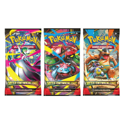 Vollständige Details anzeigenEntdecke die Kraft der Mega-Entwicklung! Mit diesem Set aus 3 original Pokémon TCG: Mega Entwicklung 3 Booster Packs (deutsche Ausgabe) ka...