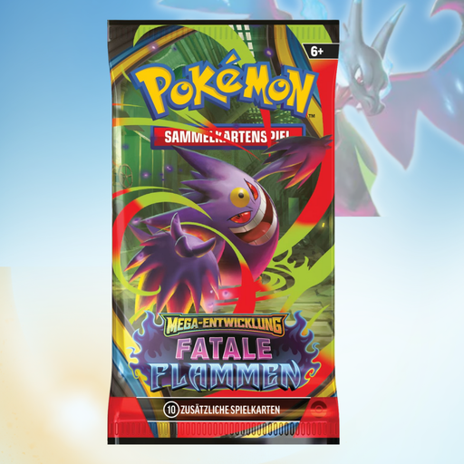 1x Pokémon TCG – ME02 „Mega Entwicklung: Fatale Flammen“ Booster | 1-Booster-Pack | Deutsche Edition