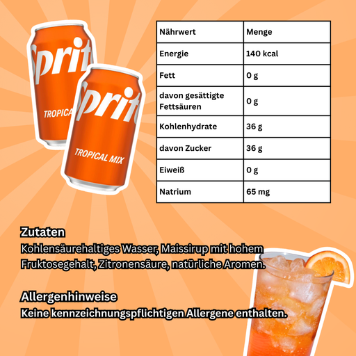 View full details📝 Produktbeschreibung Sprite Tropical vereint den bekannten, spritzigen Zitronen-Limetten-Geschmack von Sprite mit einer exotischen tropischen Note...