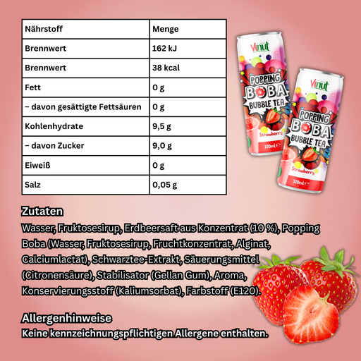 View full detailsBeschreibung Der Popping Boba Bubble Tea Drink Strawberry kombiniert aromatischen Schwarztee mit fruchtigem Erdbeersaft und aufregenden Popping-Bob...
