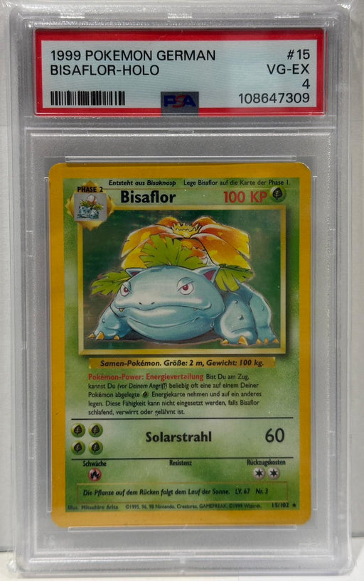 View full detailsBeschreibung:Diese originale Pokémon-Sammelkarte Bisaflor Holo stammt aus dem deutschen Base Set von 1999 und gehört zur Kategorie Holo Rare.Die Ka...