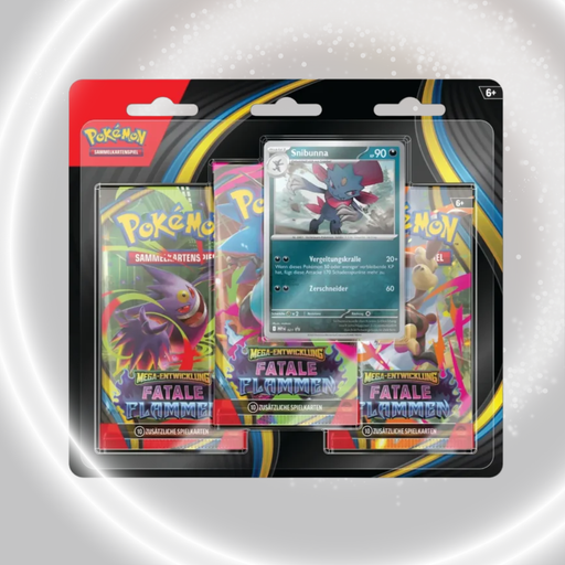 View full detailsBeschreibung:Der Pokémon Fatale Flammen 3er Blister enthält die begehrte Pokémon-Karte Snibunna sowie zwei weitere Überraschungskarten aus der beli...