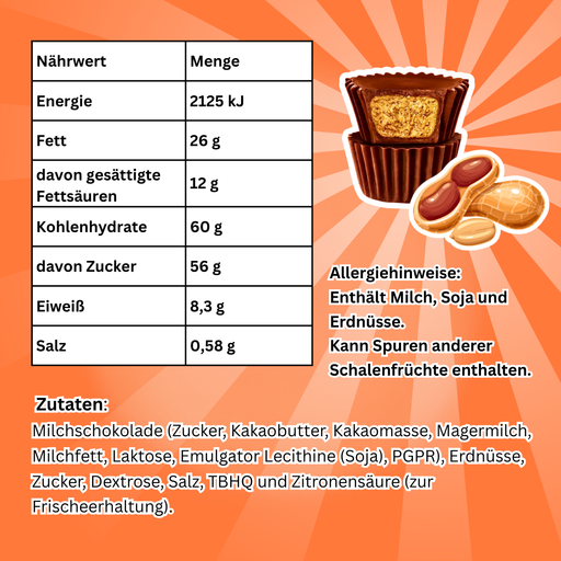 View full detailsBeschreibung: Reese’s Minis Peanut Butter Cups sind kleine Schokoladenpralinen mit cremiger Erdnussbutterfüllung und kakaohaltiger Fettglasur – ide...