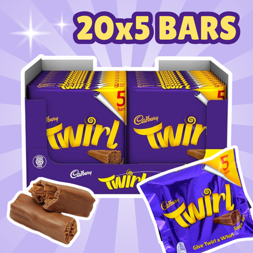 View full details📝 Produktbeschreibung Dieses große Vorratspack enthält 20 Cadbury Twirl 5er-Packs – insgesamt 100 zartschmelzende Riegel. Die beliebte Twirl-Schoko...
