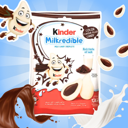 ProduktbeschreibungKinder MilkRedible sind zarte Milch-Tropfen mit cremiger Kakao-Füllung, die für einen intensiven Milch- und Schokoladengenuss so...