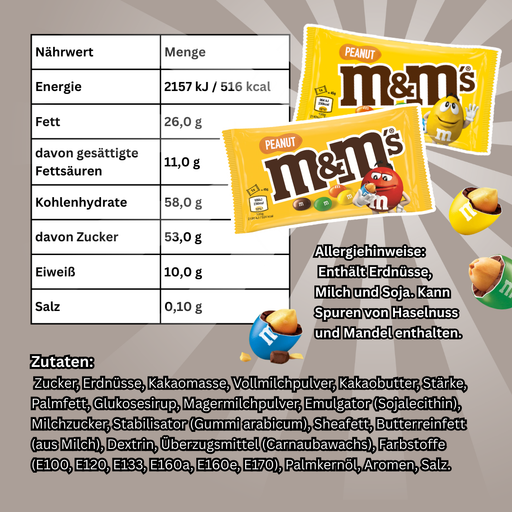 View full detailsBeschreibung:Knackige Erdnüsse umhüllt von zarter Milchschokolade und einer bunten Zuckerschale. M&M’s Peanut sind der perfekte Snack für unter...